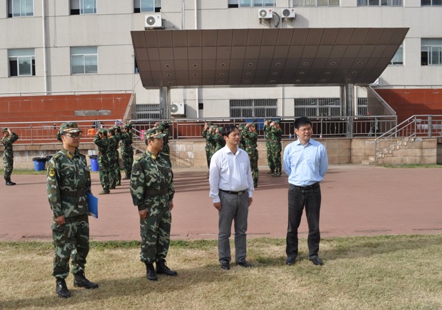 10月12日上午,省教育厅体卫艺处时文山副调研员到我院草场门校区训练场指导2012级学生军训工作,学工处处长刘贵友和武警二支队一大队副大队长王金伟等陪同。