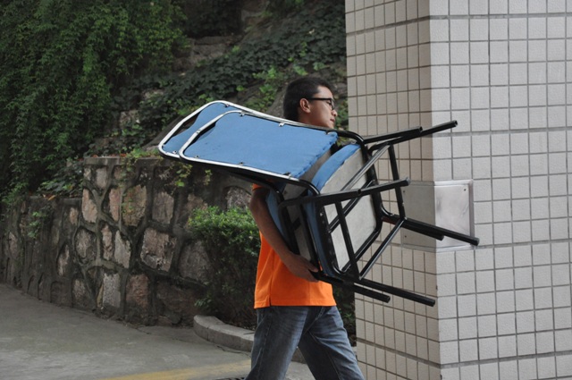 小庄是数学与信息技术学院大三的学生。我们见到他时,他已经两眼通红。"三天只睡了十个小时,确实很累。"小庄笑着说。跟很多志愿者不一样,他的主要工作是幕后的:整理分发材料、布置场地、调度人员......