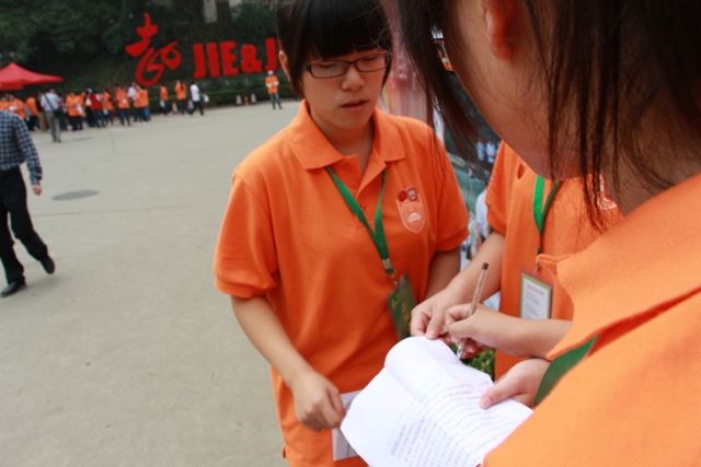 在院庆期间,细心的人会发现,在庆典会场前后、在嘉宾下榻的宾馆内外、在车站机场左右,在餐厅、在校园、在休息室,在跟院庆相关的没一个地方,都有身着橙色T恤的年轻人,在热情周到地服务--他们,就是院庆志愿者。