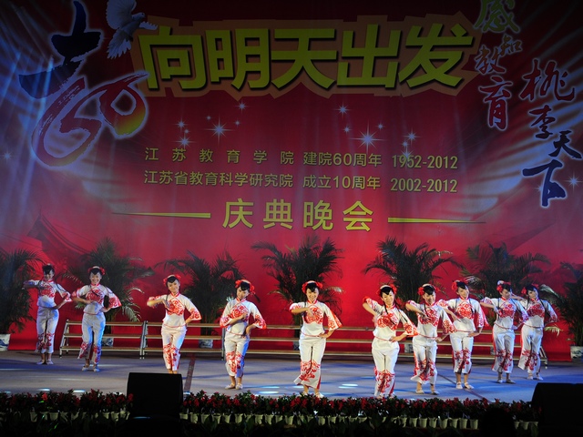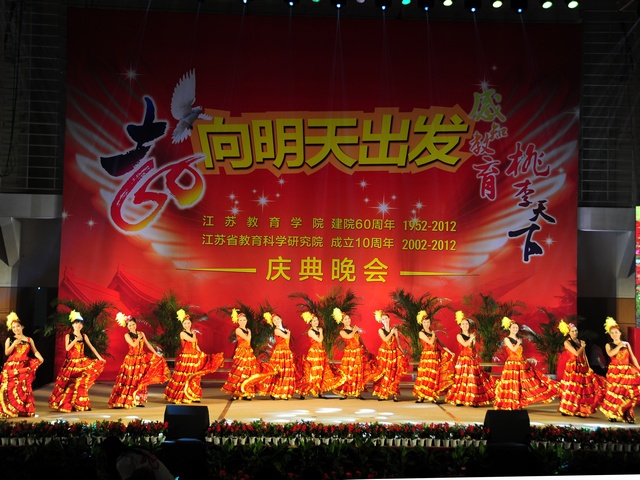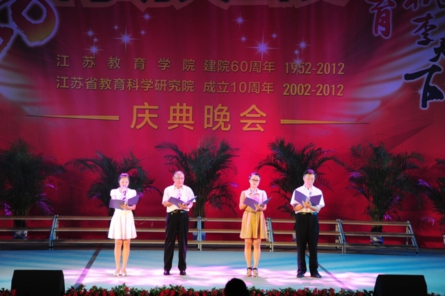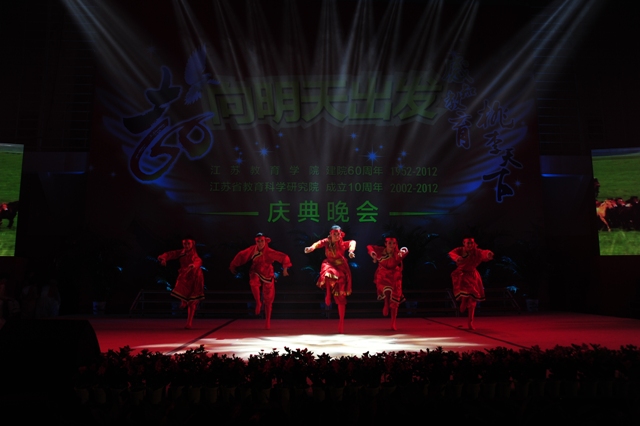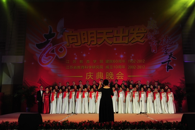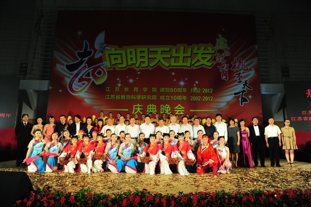 秋风习习的夜幕下,音乐阵阵,响彻云霄;色彩斑斓的灯光中,笑脸盈盈,遍布校园。9月22日晚,"向明天出发--江苏教育学院建院60周年,江苏省教育科学研究院成年10周年"庆典晚会在我院草场门校区体育馆隆重举行。院党委书记管向群,党委副书记、副院长程建军,常务副院长周成平,副院长王仁雷、张勤,纪委书记刘青平,副院长刘继红与来自全国各地的嘉宾、校友以及我院师生代表欢聚一堂,共同欣赏,共贺华诞。