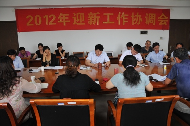 为"便捷、周到、安全、高效"地做好今年的新生接待工作,9月4日下午,我院在草场门校区教科研楼503会议室召开2012年迎新工作协调会,全面部署迎新工作。院党委副书记、副院长程建军出席会议,有关职能部门负责人和各院(系)学生工作负责人参加会议,会议由学工处处长刘贵友主持。