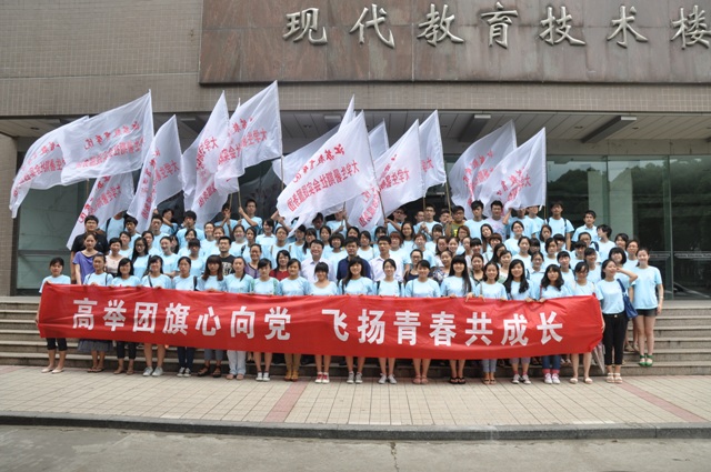 在热烈的掌声中,程建军为各实践团队授旗,全体队员庄严宣誓。会后,与会领导与社会实践团队全体队员合影留念。