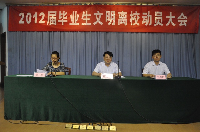 毕业生代表、08中文班顾渊雨同学宣读《致毕业生的一封信》,08数学班呙睿同学代表毕业班团学干部发言。