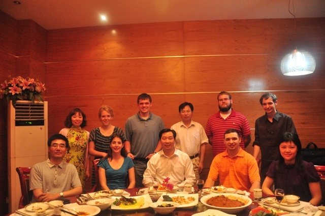 11日晚上,外办王家军主任代表学院为交流的师生举行了欢迎晚宴,外语系副主任张莉和生化学院院长徐国华参加。据悉,Emily A. Lambert博士将在我院进行为期一个月的交流,在此期间,Emily A. Lambert博士将会在各个校区作关于美国文化的讲座,四名学生也将与广大学生作面对面的交流。