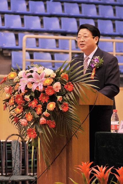 党委副书记、副院长程建军代表院党委致辞。他对第九次团代会、第五次学代会以来我院团委会、学生会的工作给予了高度肯定,指出,长期以来团学组织各级干部率先垂范,在比较困难的物质条件下,所表现出的饱满政治热情、务实求是态度、团结协作精神,得到了全院教职员工的肯定和赞赏。他希望新一届的团学组织努力工作,团结带领广大团员、青年学生,在继承过去的辉煌成就和优良传统的基础上,继往开来、开拓创新,推进我院团学工作迈上新台阶,为广大团员青年成长成才、为我院的改革与发展做出新的更大贡献。程建军向全院团员青年提出两点希望,一是希望同学们树立远大的理想和信念,以天下兴亡为己任,立志成才;二是希望同学们适应时代发展进步的潮流,努力锤炼自己的学习能力、竞争能力和自主创业能力,在重基础,重实践,重能力三个方面下功夫。程建军动情地指出,我们已全面推进学院的改制迎评工作,并即将隆重庆祝学院六十周年华诞,这是我院历史上的一个重要里程碑,过去的六十年充满着奋斗与成功,前辈先贤辛勤的汗水为今后教院人继续不懈地努力奠定了坚实的基础。今天我们面临更加严峻的历史挑战,任重而道远。希望同学们积极投身到改制迎评和办学六十周年活动中去,从自身做起、从当下做起,努力学习、积极实践,不断自我完善,为母校的发展作出贡献,为大学生活交上满意答卷。