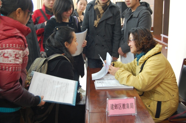 现场招聘会正式开始。本次招聘会共吸引了近120余名拿到六城区教师考试面试通知单的毕业生前来参会,占我院六城区通过总数的70%。招聘会共提供了建邺区中学、小学、幼儿园94个教师岗位。所招聘的学科基本涵盖我院所有专业。招聘会现场气氛热烈,秩序井然。