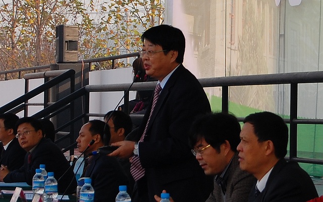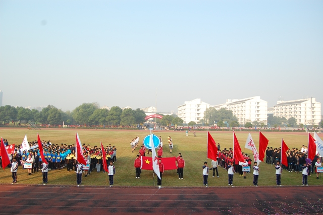 王仁雷副院长致开幕词。王院长首先代表院党委、行政向本次运动会的开幕致以热烈的祝贺,向刻苦训练、积极备战的运动员以及全体教练员、裁判员和后勤服务人员致以亲切的问候,向在运动会筹备工作中付出大量劳动、洒下辛勤汗水的同志们表示衷心的感谢。王院长说,学校体育是全民体育运动的重要组成部分,是学校精神文明建设和校园文化建设的重要内容。长期以来,我院高度重视开展群众性体育运动,促进学生养成加强锻炼、提高体质的良好习惯,培养德智体美全面发展的复合型人才。王院长强调,运动会是展示师生精神风貌的一个平台,全体运动员应该发扬 "更快,更高,更强"的体育拼搏精神,本着"友谊第一、比赛第二"的原则,尊重裁判,公平竞争,团结协作,顽强拼搏,赛出水平,赛出风格,以优异的竞技成绩和高尚的体育道德,充分展示我院体育工作水平和广大师生健康向上的精神面貌。他希望全体裁判员坚持公平公正的原则,恪尽职守,严于律己,客观评判,秉公执法,希望全体工作人员协调配合,认真做好服务保障工作,确保运动会各项工作顺利进行。