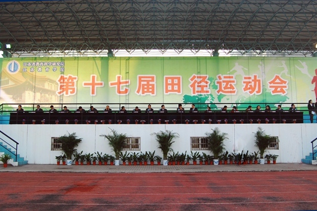 路绮同学和田磊老师分别代表全体运动员和全体裁判员先后宣誓。最后,院党委副书记、副院长程建军宣布江苏教育学院第十七届田径运动会开幕。