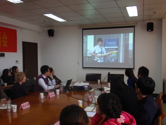 MS ULRIKE BAKER女士和陈亮先生通过四段视频共同向同学们介绍了南十字星大学三个校区的基本情况,使同学们对南十字星大学有了全面了解和直观感受。