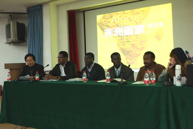 10月28日下午,我院在现代教育技术大楼二楼报告厅举行了"非洲画家谈艺术"学术报告会,常务副院长周成平主持,美术系师生300多人参加。周成平对远道而来的非洲朋友的拨冗造访和精彩报告表示热烈欢迎和衷心感谢。
