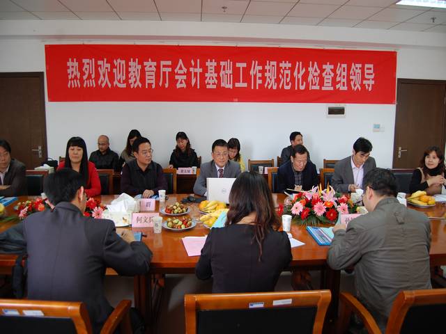 10月25日下午2:30,省教育厅第三批会计基础工作规范化检查组莅临我院,由苏州大学财务处副处长孙琪华,江苏技术师范学院财务处副处长孙松春、徐州师范大学财务处科长何文兵组成的专家组在我院听取了常务副院长周成平及财务处长周群关于我院基本情况及迎评工作的汇报。苏州大学孙处长介绍了本次检查的要求及思路。专家组同志经过一天的工作,于10月26日上午10:00向我院迎评工作领导小组成员反馈了检查意见。专家组对我院的会计基础工作规范化给予充分的肯定,一致认为我院的会计基础工作在院党委、行政的领导下取得了很大的成绩,会计工作规范、有序,在人事紧张的条件下,会计人员恪尽其职,圆满地完成了各项工作。同时对我院会计基础工作规范化建设提出了宝贵意见和建议。