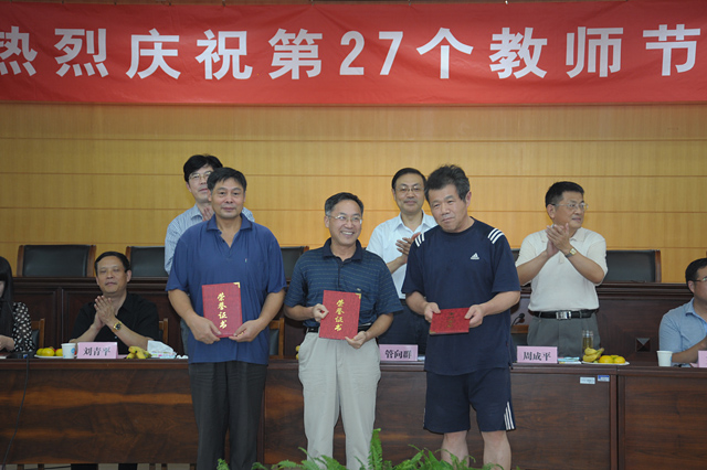 周成平首先宣读了从事教育工作满30年的同志名单,代表院党委、行政向他们表示热烈的祝贺,并为他们颁发了荣誉证书。