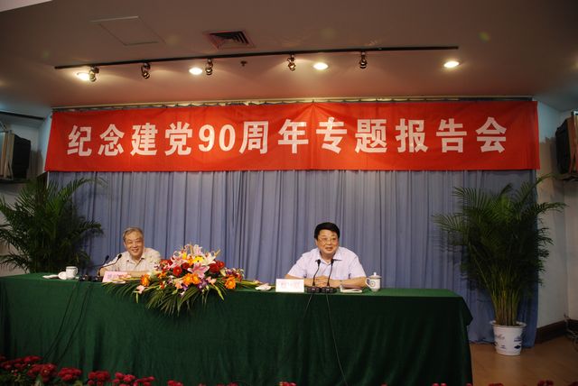 6月22日下午,我院在现代教育技术楼报告厅举行庆祝建党90周年学习报告会。报告会邀请江苏省思想政治理论课教学指导委员会主任、南京大学马克思主义研究院副院长、原南京大学党委常委、宣传部长、博士生导师、著名的毛泽东思想研究学者、党史专家姚润皋教授作主题报告。院党委书记管向群,常务副院长周成平,副院长杨九俊、王仁雷、王培君,院长助理施忠等出席报告会。全体教职工党员参加。报告会由院党委副书记、副院长程建军主持。