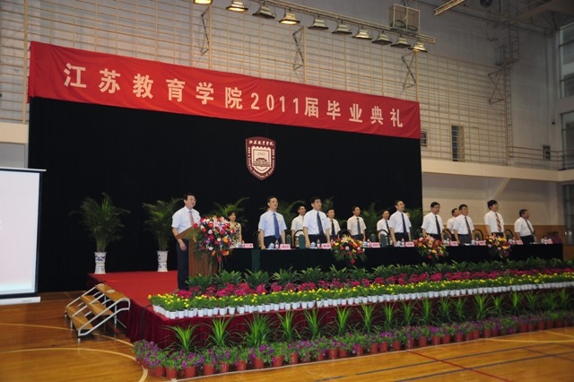 丁晓昌院长代表党委、行政在毕业典礼上致辞。丁院长首先代表院党委、院行政和全体教职员工向圆满完成学业的2011届专科毕业生表示热烈的祝贺!向为学生成长成才而倾心耕耘、无私奉献的老师们表示亲切的慰问和衷心的感谢。他指出,同学们在江苏教育学院学习、生活、成长的三年,是不平凡的三年,也是硕果累累的三年。这不仅使得同学们的心智不断走向成熟,品德不断经受砥砺,而且成为同学们走向社会、迎接人生新挑战的宝贵财富。丁院长勉励即将走上岗位的同学们坚持远大理想,坚持勤奋学习,坚持投身实践,坚持全面发展,充分发挥才干,在祖国和人民最需要的地方施展才华,挥洒青春,教书育人,服务人民,报效祖国。