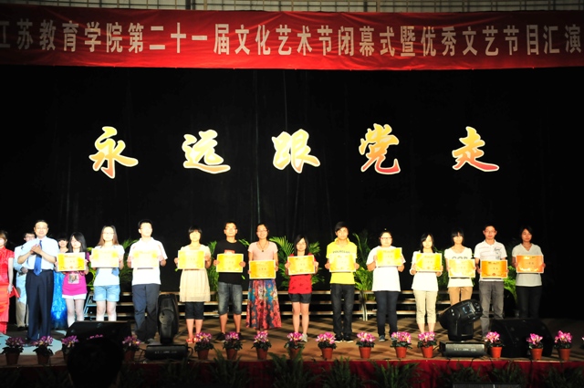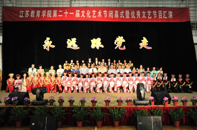 随后进行了优秀文艺节目汇演。舞蹈《剪纸姑娘》、小合唱《龙船调》、昆曲《牡丹亭》选段等在江苏省第三届大学生艺术展演中获奖的作品引起了观众阵阵热烈的欢呼。来自我院离退休教职工艺术团、教院附小、石头城社区石城文化艺术团、南京艺术学院的精彩演出赢得了观众阵阵掌声。歌曲串烧、街舞等广大学生喜闻乐见的节目更是一再将晚会推向高潮。演出在江苏教育学院合唱团《歌唱祖国》的嘹亮歌声中结束。
