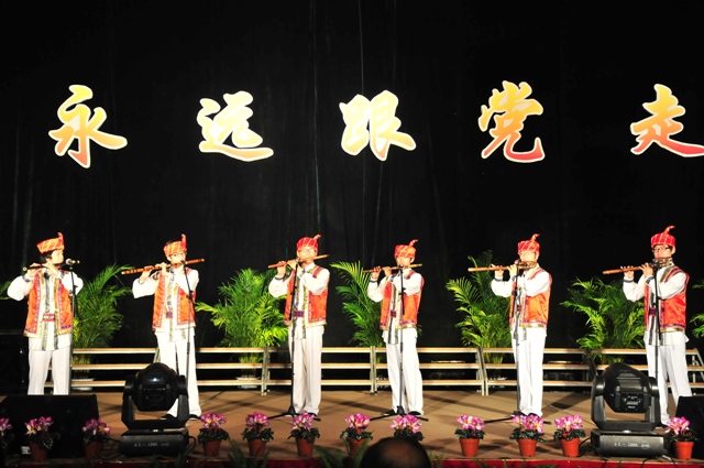 演出结束后,领导走上舞台亲切慰问演职人员并与他们合影留念。