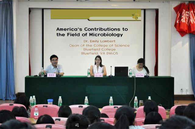 应生命科学与化学学院的邀请,5月31日,美国Bluefield College的Emily Lambert 博士在草场门校区教育技术楼二楼报告厅举办了一场主题为America's Contributions to the Field of Microbiology的学术报告,学术报告会由生化学院院长徐国华主持。此次学术报告会,不仅促进了中外学术交流,还加强了生化学院学生对生物学尤其是微生物学学科前沿知识的了解,进一步开阔了广大师生的学术视野。