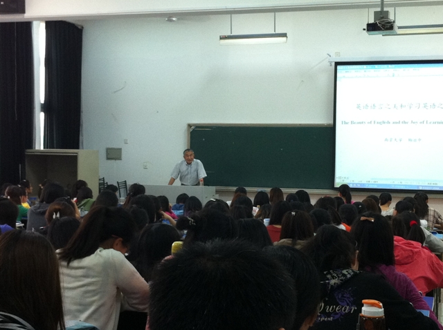 5月30日下午,外语系邀请全国大学英语教学指导委员会会长、南京大学杨治中先生为全体学生开设了专题讲座,讲座题目为"英语语言之美和学习英语之趣"。