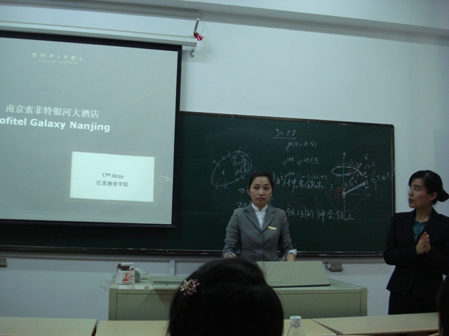 5月15日、17日下午,南京万达希尔顿酒店和南京索菲特银河大酒店应邀来小行校区地理系作了招聘、实习宣讲。地理系2012届、2013届旅游专业毕业生参会。宣介会由地理系就业专员龚小辉主持。