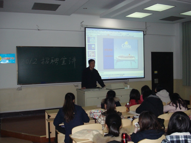 3月30日下午,人文学院地理系在小行校区2214教室举办了一场招聘宣讲会。来自南京潮瑜船舶管理有限公司的负责人向大家介绍了国际游轮旅游的相关情况以及招聘信息,地理系旅游专业的2012届、2013届毕业生参加了招聘宣讲会。