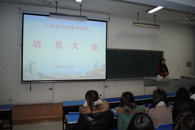 2月29日下午,外语系在浦口校区召开了2010级专转本学生实习动员大会。大会由教学秘书顾楠主持。