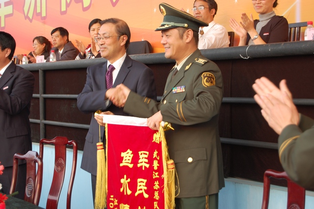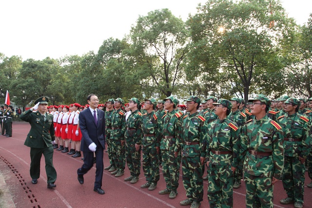管向群发表了热情洋溢的讲话。他首先代表学院向武警江苏总队第二支队的首长和全体施训教官表示衷心的感谢,向在军训中受表彰的先进集体和先进个人表示热烈的祝贺,向尽心尽力、竭诚服务的院军训办全体工作人员,各位带队教师、班主任,各院(系)学生工作负责人以及有关职能部门的同志表示诚挚的问候。管向群说,在今天的阅兵式和汇报表演中,同学们充分展现出军训教育取得的丰硕成果,展现出90后昂扬向上、挑战自我的精神风貌。希望同学们进一步巩固和扩大军训成果,时时处处按照军训时的标准来严格要求自己,把军训过程中练就的优良作风与铁的纪律保持下去,把军人的顽强刚毅与大学学习的求真严谨结合起来,努力成为德才兼备、全面发展的优秀人才,为全面建设小康社会、实现中华民族伟大复兴的宏伟目标作出自己应有的贡献!