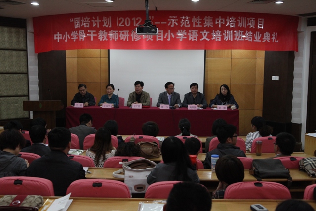 10月24日上午,我院隆重举行"国培计划(2012)"--中小学骨干教师研修项目小学语文班的结业典礼,副院长王仁雷出席并讲话。中文系党总支书记卜玉平、副主任沈明,教务处副处长耿珺,现代教育技术中心主任高荣国及参与国培的相关人员参加典礼。结业典礼由教务处处长蔡飞主持。
