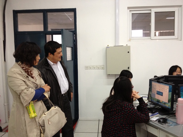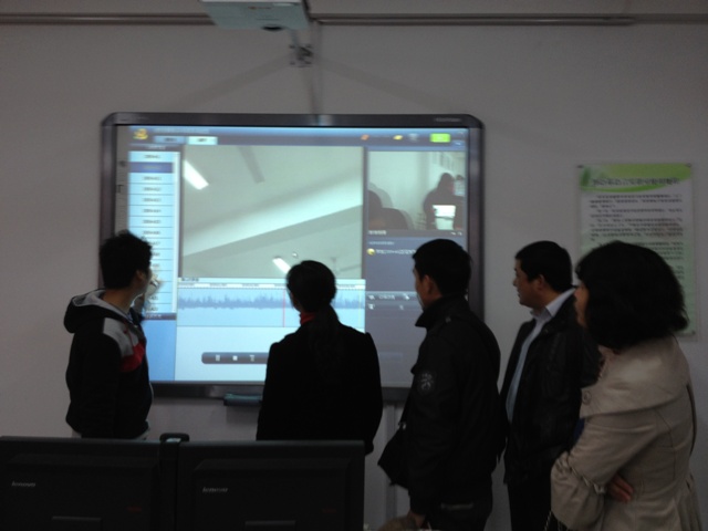 张莉向来访客人介绍了本系语言实训室的建设历程、教学功能、使用状况和使用效果,并带领来访者参观了进行中的视听说、综合英语和高级口译的教学现场和自主学习平台的建设和管理实况。张莉还积极与对方交流,了解其外语专业建设的相关情况,以便更好地推进本系科的专业拓展和人才培养工作。