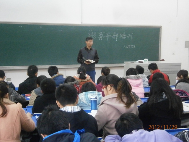 11月29日,人文学院在浦口校区教学楼102举行2012级新生班委培训,人文学院2012级新生班级所有班团干部成员参加培训。