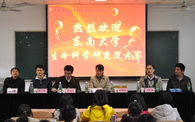 讲座内容主要为神经科学方面的研究。在此基础上,各位专家还介绍了各自实验室目前所从事的主要研究方向,同时还特意介绍了目前在他们实验室工作或正进一步深造的我院历届毕业生的工作情况,专家们对他们的工作给予了高度的肯定,同时也表示热忱欢迎我院学生继续报考东南大学生命科学研究院的研究生。讲座还特意安排了师生互动环节,各位专家对同学们的提问一一进行了认真的解答。