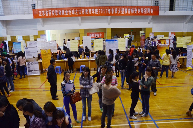 面对日趋严峻的就业压力,为更好地拓宽毕业生的就业渠道, 4月27日上午,学工处大学生就业指导中心在草场门校区体育馆举办了一场“江苏教育学院2013年春季大型教育师资专场招聘会”。