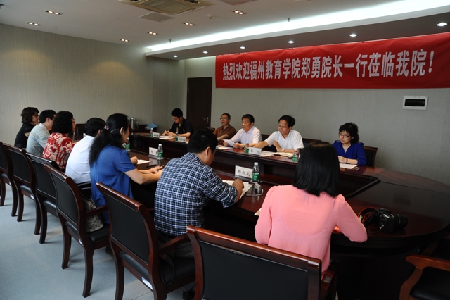 5月24日上午,福州教育学院院长、福州教育局党组书记、局长郑勇等一行7人来我院考察交流。我院常务副院长周成平给予热情接待,并与来宾们就办学情况进行了座谈交流。办公室、教务处、科研处、学生处等部门同志参加座谈会。