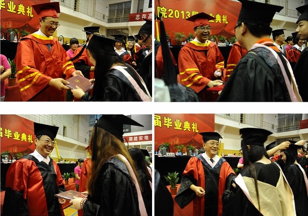 管向群宣读了2013届本科“优秀毕业生”表彰决定。在雄壮优美的乐曲声中,毕业典礼进入高潮,院、系(部)、部门领导为“优秀毕业生”颁发荣誉证书,为全体本科毕业生颁发毕业证书,为每一位学士学位获得者扶正流苏、授予学位并合影留念。