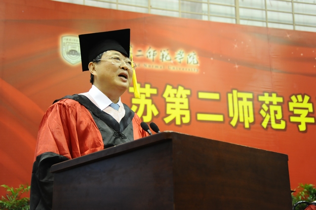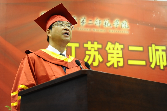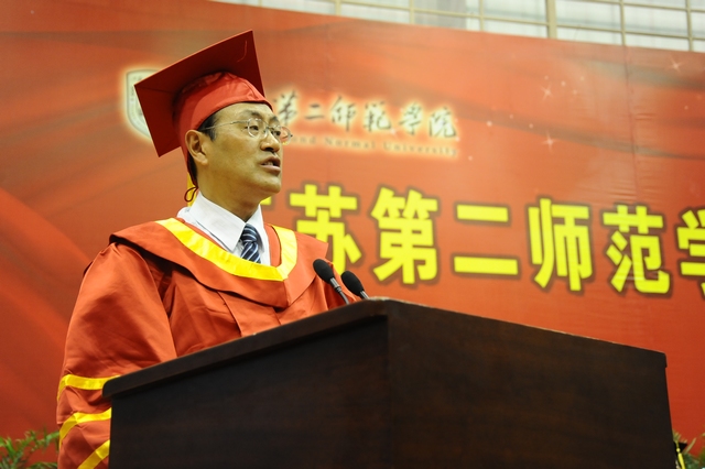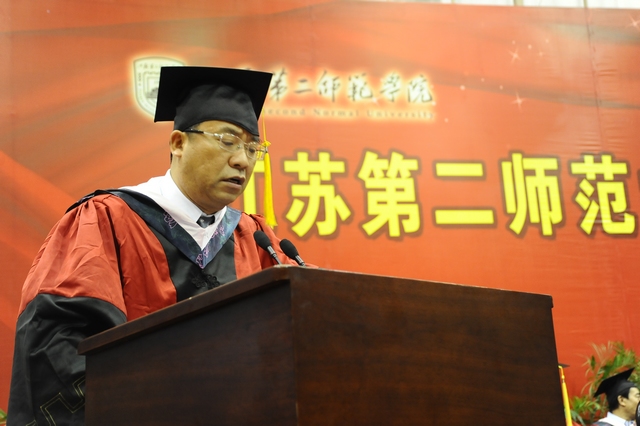 在庄严的国歌声中,毕业典礼正式开始。丁晓昌发表了热情洋溢的讲话。他首先代表院党委、院行政和全体教职员工向圆满完成学业的2013届本科毕业生表示热烈的祝贺,向为学生成长成才而倾心耕耘、无私奉献的老师们表示亲切的慰问和衷心的感谢。丁晓昌指出,这几年来同学们不仅善于思考、勇于创新,使得知识架构不断完善,还注重德智和谐发展,师生之间教学相长,同学之间团结友爱。在大学生活中,同学们砥砺情操、志存高远,懂得了感恩,学会了回报,对生活的领悟和认知逐渐沉淀。他向同学们提出四点希望。一是胸怀祖国、心系苍生,树立远大理想。希望大家牢固树立正确的世界观、人生观、价值观,把个人成长成才融入祖国和人民的伟大事业之中,谱写壮丽的青春乐章。二是勤于学习、善于思考,提升知识底蕴。希望大家以终身学习为目标,珍惜韶华,刻苦学习理论知识和职业技能,努力在知识经济飞速发展的时代大潮中立于不败之地。三是懂得感恩,学会回报,坚持投身实践。希望大家坚持理论联系实际,积极投身社会实践,不断提高实践能力和创新创业能力,为立足社会、成就事业奠定坚实基础。四是追求公平,捍卫正义,坚持全面发展。希望大家坚持德才兼备、全面发展的基本要求,以平等的眼光、诚挚的爱心、不屈的品质和开放的胸怀,传承和发扬师院传统与精神,成为可堪大用、能负重任的栋梁之材。丁晓昌满怀深情的讲话在毕业生中激起了强烈的共鸣,博得了在场师生和家长们的阵阵掌声。