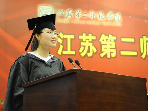 毕业生代表、中文系学生裴晓逊满怀深情地回顾了四年的大学生活,感谢母校的辛勤培育和老师们的谆谆教诲,她表示,在即将开始的新旅途上,2013届毕业生会牢记“崇德敬业,求真创新”的校训,脚踏实地、奋力拼搏、积极进取,成为德才兼备的优秀人才,为母校增光添彩。