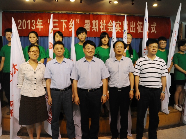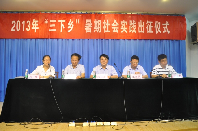7月3日下午,我院2013年暑期大学生文化、科技、卫生“三下乡”社会实践活动出征仪式在草场门校区二号报告厅隆重举行,党委副书记、副院长程建军,党委宣传部、教务处、学生处、团委等部门负责同志及参与社会实践的学生代表一百余人参加仪式。