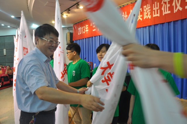 最后,与会领导在热烈的掌声中为各实践团队授旗。会后,全体参会人员合影留念。