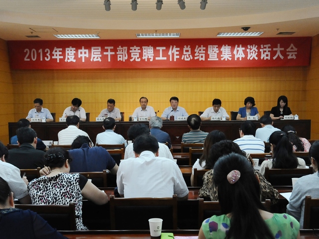 7月10日下午,我院在教科研楼511会议室召开2013年度中层干部竞聘工作总结暨集体谈话大会。院党委书记管向群,党委副书记、副院长程建军,常务副院长周成平,副院长杨九俊、王仁雷、张勤,纪委书记刘青平、副院长刘继红出席会议,全体中层干部参加会议。会议由程建军主持。
