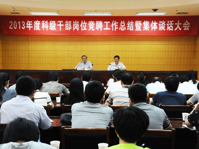7月11日下午,我院在教科研楼511会议室召开2013年度科级干部岗位竞聘工作总结暨集体谈话大会。院党委书记管向群,纪委书记刘青平出席会议,全体科级干部参加会议。会议由刘青平主持。
