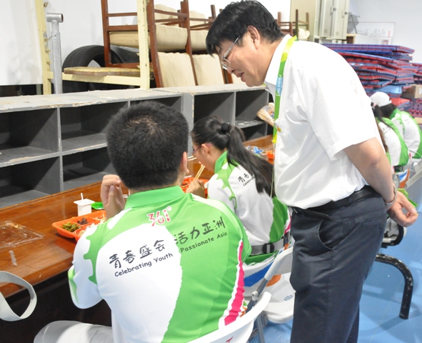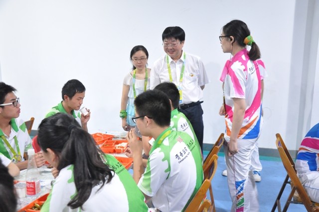 8月18日,我院亚青会320名赛会志愿者迎来了柔道项目赛事正式服务的第二天,院党委副书记、副院长程建军在院团委副书记丁莹的陪同下,来到龙江体育馆志愿者之家,亲切慰问了我院参与志愿服务的志愿者们。