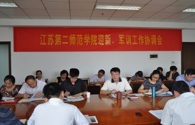 程建军代表院党委、行政对迎新、军训工作提出几点要求。他指出:一、要充分认识到本次新生接待工作的特殊意义。今年是我院第一次以江苏第二师范学院的名义面向全国招生,新生中有三十多名少数民族学生,在迎新工作中必须考虑细致,服务周到;二、各院(部)根据今年招生的实际情况,认真准备各自的接待方案,要做到组织有序、分工到人,确保各环节流畅、规范、便捷、无障碍,无缝接轨,同时显示富有特色的院(部)文化;三、处理好可能出现的新情况、新问题,安排好外省新生提前或推迟到校的饮食住宿,特别是贫困生、残疾学生要重点关注、对口接待;四、及时做好与接待新生相关的安全、保卫工作,做好道路引导、医疗保障等服务;五、院(部)、职能部门之间要相互支持、相互帮衬,不推诿、不拆台,接待新生时要主动服务、延伸服务、周到服务、微笑服务。各单位要高度重视、确保各项迎新工作扎实到位,让新生高兴,让家长满意。
