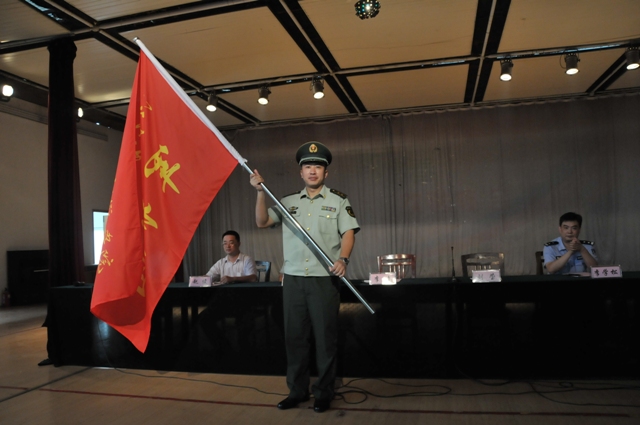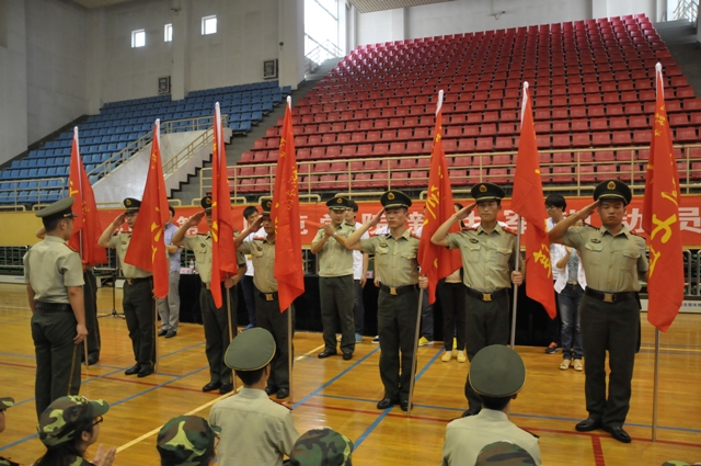 最后,刘莹向李速授军训团团旗,全体与会领导为各军训连连长授军训连连旗。大会在嘹亮的军歌声中结束。