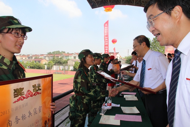 随后丁晓昌发表了热情洋溢的讲话。他首先代表学院向来自全国各地的近1500名普高新生表示诚挚的欢迎,向在军训中受表彰的先进集体和先进个人表示热烈的祝贺,向武警江苏总队第二支队的领导和全体施训官兵表示衷心的感谢,向尽心尽力、竭诚服务的院军训办全体人员,各位辅导员、各院(部)学生工作负责人以及有关职能部门的同志表示诚挚的问候。