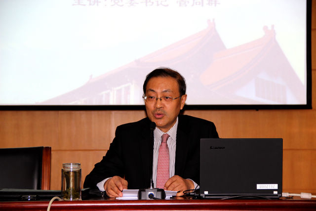 会上,管向群从党的群众路线的形成和发展、精神实质,贯彻落实三个方面给全体与会人员上了一堂深入开展党的群众路线教育实践活动专题党课。管向群以文献为依据,从党的群众路线思想的萌发、概念的提出、理论的确立以及内涵的发展展开论述,指出群众路线是党的生命线和根本工作路线,贯穿于党的一切工作中。管向群认为,党的群众路线的精神实质包含了以下几个问题:即最本质的问题“为了谁”——“一切为了群众”;最核心的问题“依靠谁”——“一切依靠群众”;最关键的问题“如何实行”——“从群众中来到群众中去”;最重要的问题“怎么做”——“为民、务实、清廉”。要贯彻落实好党的群众路线,就必须解决好价值、实践、制度三个层面的问题。在价值层面,要突出唯物史观和群众观点教育,解决内在动力不足的问题,全体党员干部要对党的群众路线进行再认识、再学习、再武装,促进从认识到信念、文化、行动的三个转化。在实践层面要与加强和创新社会管理相结合,与运用网络媒体做好群众工作相结合,与解决人民群众切身利益相结合。在制度层面,要使人民代表大会制度真正成为人民意志代表的“主渠道”,真正把干部的权力关进制度的“铁笼子”。管向群要求我院党员干部对党的群众路线做到科学理解、准确把握和努力践行,对存在的问题切实整改,进一步推进我院党的群众路线教育实践活动。