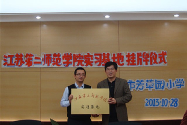 10月28日下午,我院与南京市芳草园小学举行实习基地签约授牌仪式。副院长王仁雷,教学督导李新宇、马烈;教务处处长蔡飞、副处长陈蓓,外国语学院副院长张莉、实习指导老师王虹以及南京市芳草园小学校长谢晓富、英语教研组组长余林共同参与了此次活动。