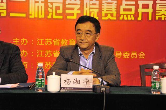 杨湘宁在开幕式上发表讲话。他提出三点希望和要求:第一,各位参赛选手在比赛中要严格遵守各项赛规赛纪;第二,各位评委专家要尽职尽责,严格执裁,确保大赛的公平与公正;第三,承办学校要严格执行大赛组委会的各项规定,认真细致、热情服务,圆满完成各项赛事。杨厅长指出,各师范院校要以大赛为契机,在学前师范生中营造刻苦钻研业务、苦练教学基本功的浓厚氛围,不断提升我省学前教育师资培养水平。最后,杨厅长预祝大赛取得圆满成功,参赛选手们在大赛中赛出水平、赛出风格、赛出友谊。