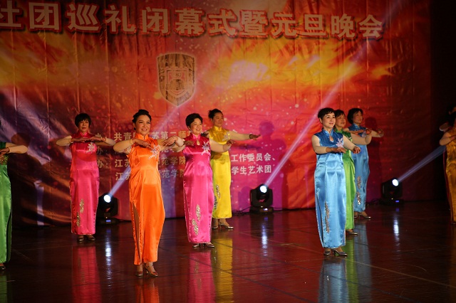 刘青平致闭幕辞。刘青平指出,2013年是我院翻开历史发展新篇章的一年,学生社团活动应在坚持传统的基础上不断创新,力求突破。院党委、行政将一如既往的支持学生社团工作,引导我院校园文化建设更上新台阶。 张勤宣布首届社团巡礼隆重闭幕。 闭幕式文艺汇演在一段热情的街舞中正式开始,各个社团各显神通,瑜伽、跆拳道、相声、音乐剧轮番上阵,其中由我院关心下一代工作委员会的老师们表演的服饰表演《在茉莉花盛开的地方》、歌曲三重唱《听妈妈讲那过去的事儿》受到了现场观众的欢迎,现场掌声阵阵、高潮迭起。精彩的演出将社团活动的精髓和我院大学生健康向上的精神面貌生动地展现在舞台上。 本次社团巡礼自11月5日开幕,共计开展社团活动32场,近4000人次参与到活动中,社团巡礼的成功举办为我院大学生提供了年轻梦想的展示舞台,丰富了广大同学们的校园文化生活。