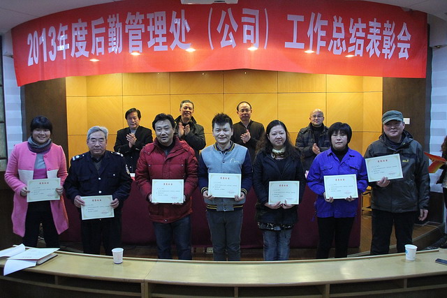 后勤管理处处长、江苏教苑后勤服务有限公司经理胡元强作2013年度工作总结报告。他总结了后勤党政工企2013年度完成主要保障任务、党风廉政建设、服务创收、机制创新和人事管理等方面的主要工作,并对后勤下一步的重点工作提出了努力方向和目标。黄大双宣读了《2013年度后勤先进集体和个人表彰决定》。刘青平书记和部门(公司)领导为获奖单位和个人颁发了荣誉证书,并合影留念。