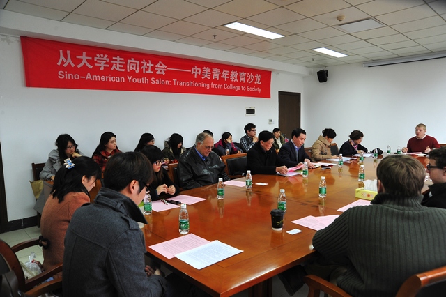 为进一步拓宽学生的对外交流渠道,在国际交流处的帮助下,日前,外国语学院与安生教育合作,成功举办中外青年交流沙龙活动。国际交流处主任王家军和罗丽冬老师、外国语学院副院长张莉和安生教育教学负责人李新宇、名誉院长曹亚民、学术总督David Finley等参加本次活动。