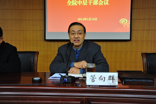 管向群强调,2014年是我院推进高水平有特色新型师范学院建设的第二年,是新校区建设进入实质性阶段的开局之年。做好今年的各项工作,任务繁重,意义重大。希望全体中层干部团结和带领全院教职员工,进一步贯彻落实党的十八大、十八届三中全会精神和罗志军书记视察学院重要讲话精神,扎实推进各项工作,抢抓发展机遇、更新发展理念、转变发展方式、加快发展步伐,继续保持各项事业全面协调可持续发展的良好势头,同心同德,与时俱进,求真务实,开拓奋进,为学院在新的历史时期实现转型发展、科学发展、跨越发展作出应有的贡献。